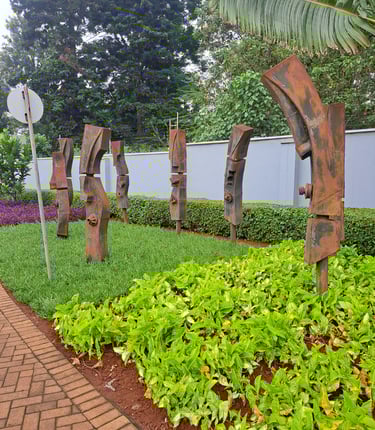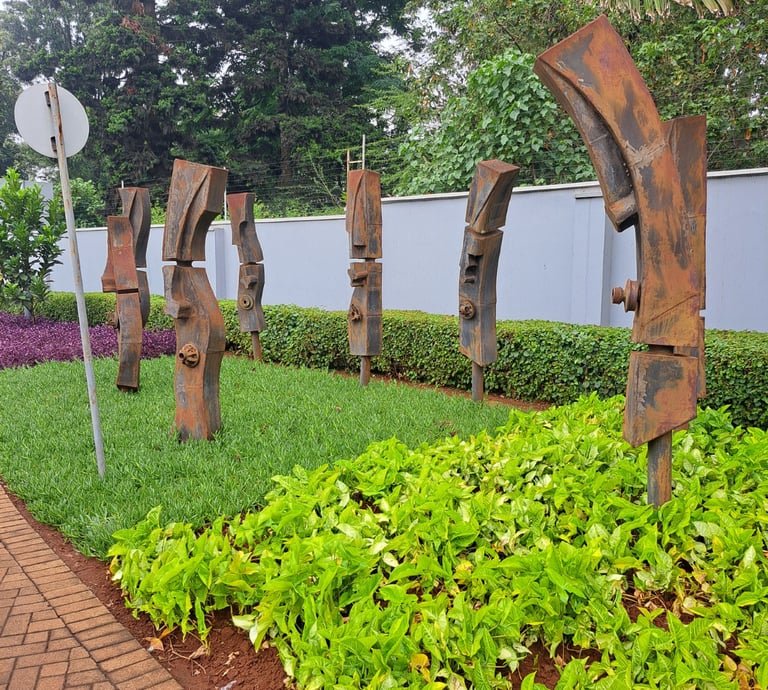 Maggie Otieno (b. Kenya) is a Nairobi-based sculptor whose career spans nearly three decades. Working with mixed media predominantly wood and metal, she creates semi-abstract forms that explore memory, human experience, and environmental histories. After studying Art and Design at Nairobi’s Creative Art Centre, she began her career in painting before transitioning to sculpture in 1999. Her material of focus—reclaimed railway sleepers anchors much of her work in the layered stories of land, labour, and transformation.
